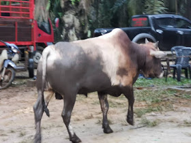 Gambar atas tu lah lembu untuk korban dan ni gambar lembu tersebut nak di sembelih.
